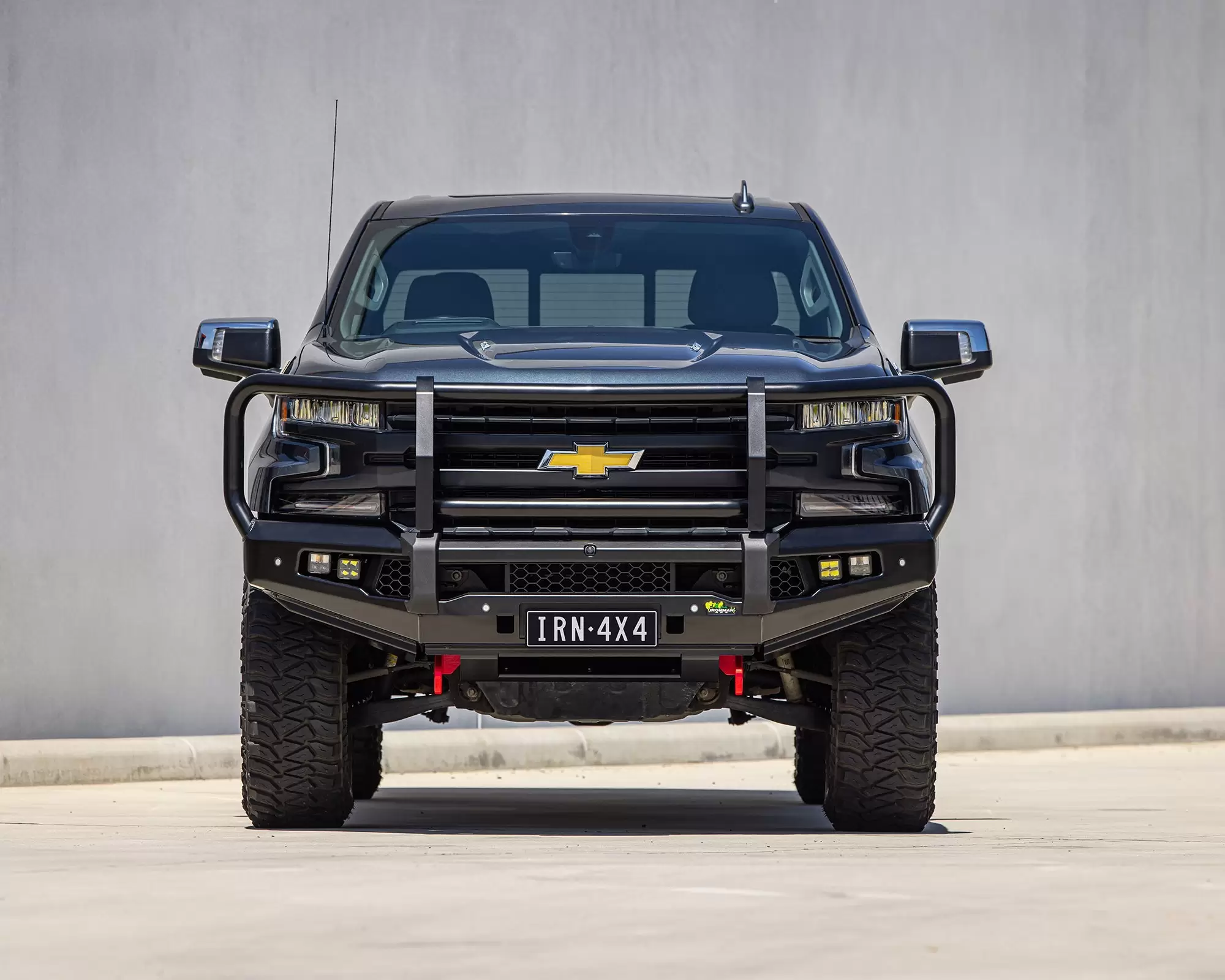 Brand new Ironman 4×4 APEX Bull Bar Chevrolet Silverado 1500. Heavy-duty modern design with integrated recovery points, bash plate, and advanced lighting compatibility.