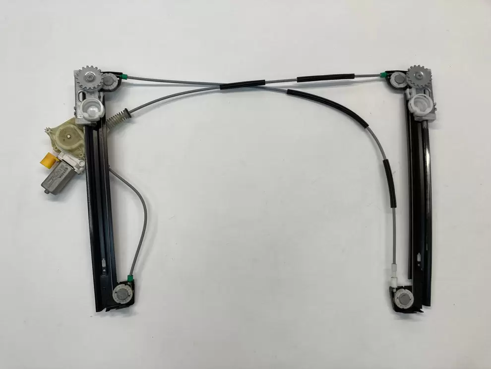 Left Front Window Regulator with Motor for the Mini Cooper R55/R56/R57, compatible with wagon, 3-door hatch, and cabrio models from 03/2007 to 05/2015. Removed from a 2011 Mini Cooper with a 1.6L petrol engine and 142,952 km, this genuine OEM used unit ensures smooth power window operation.