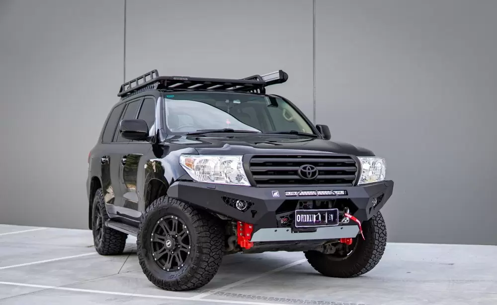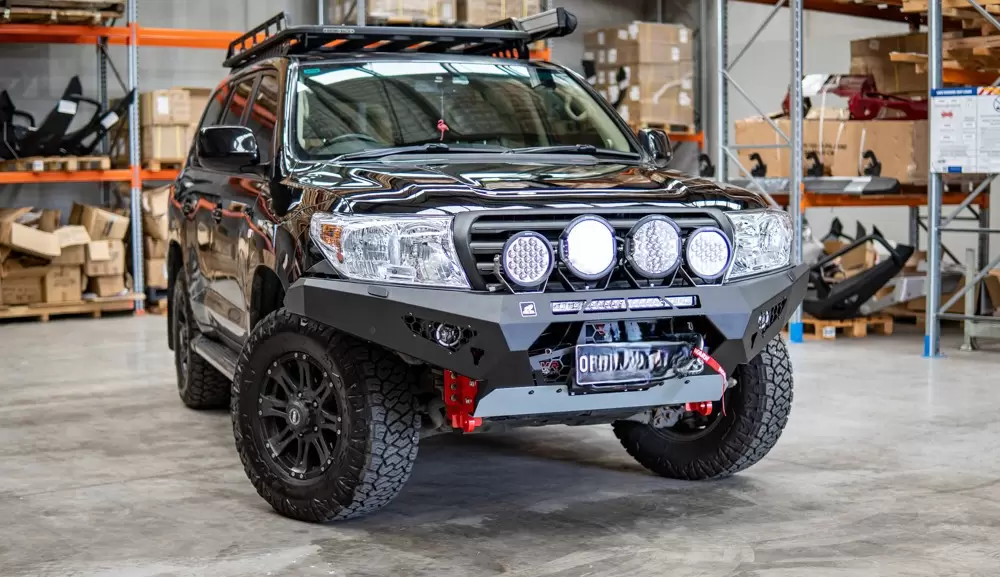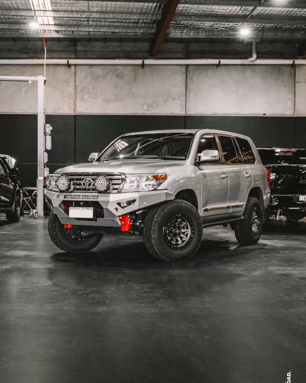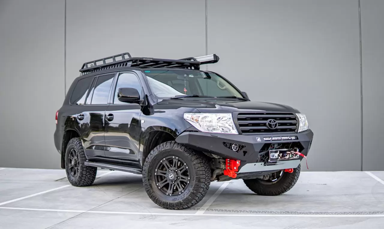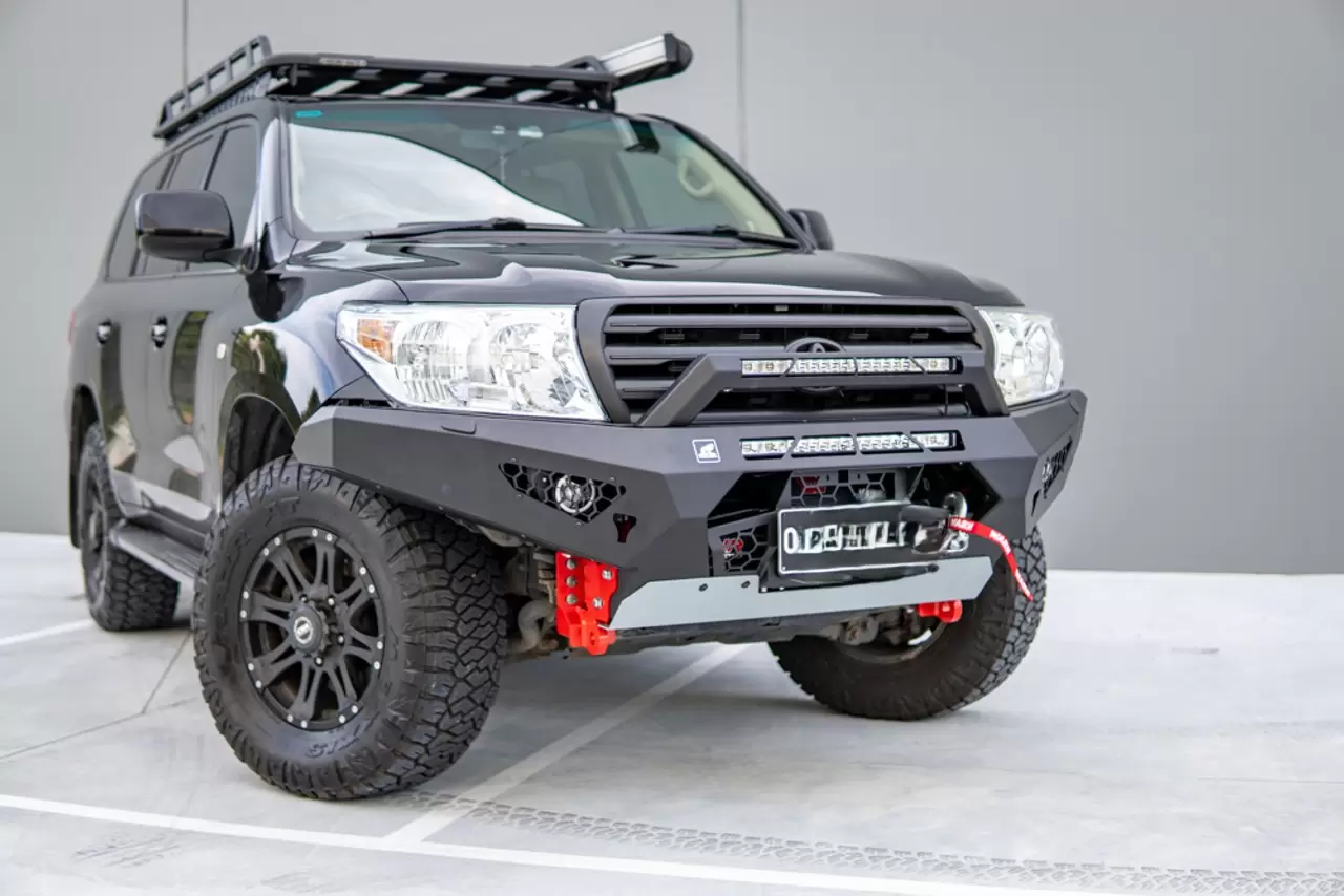 Predator Bull Bar for Toyota Land Cruiser 200 Series (2008–2014). Premium low-profile steel bull bar with aggressive styling, winch compatibility, and modern lighting options.