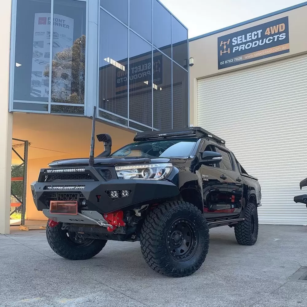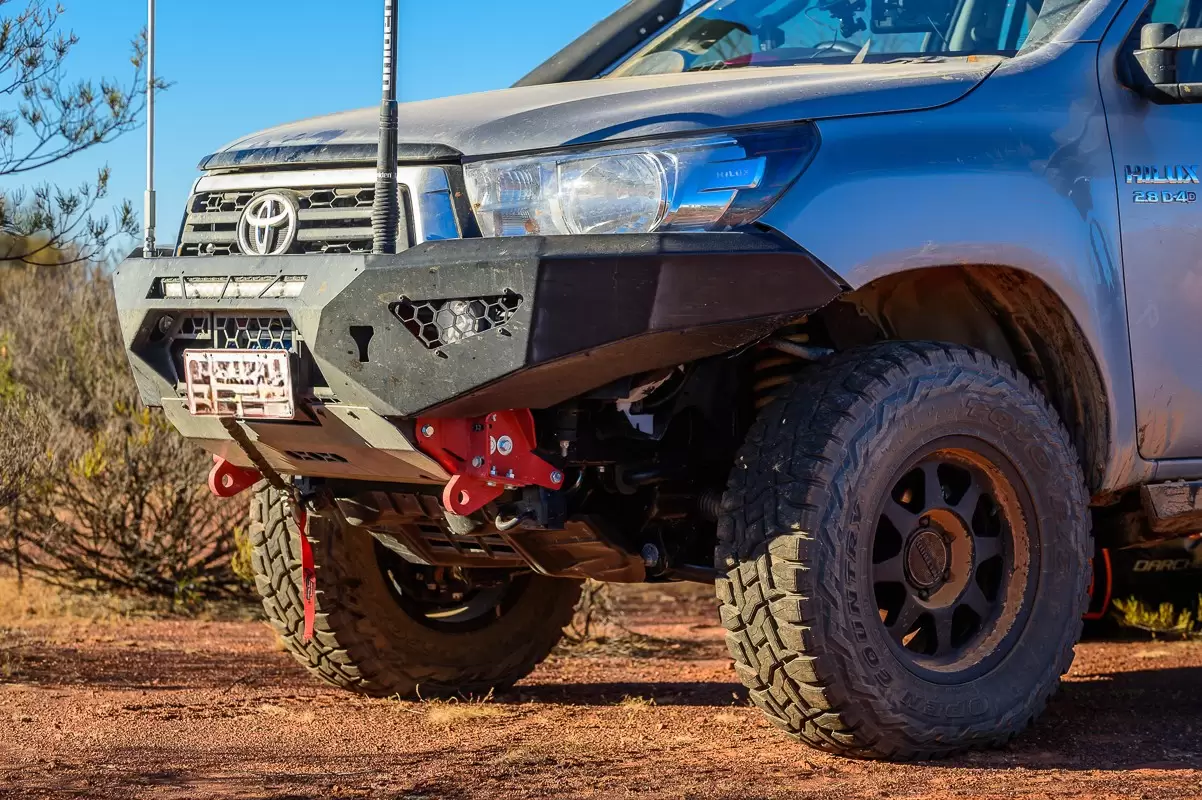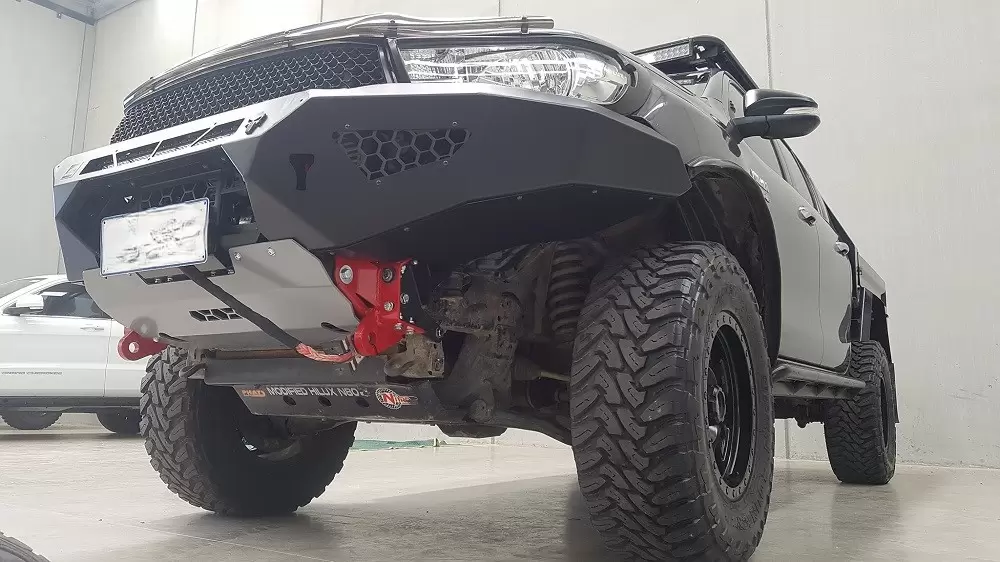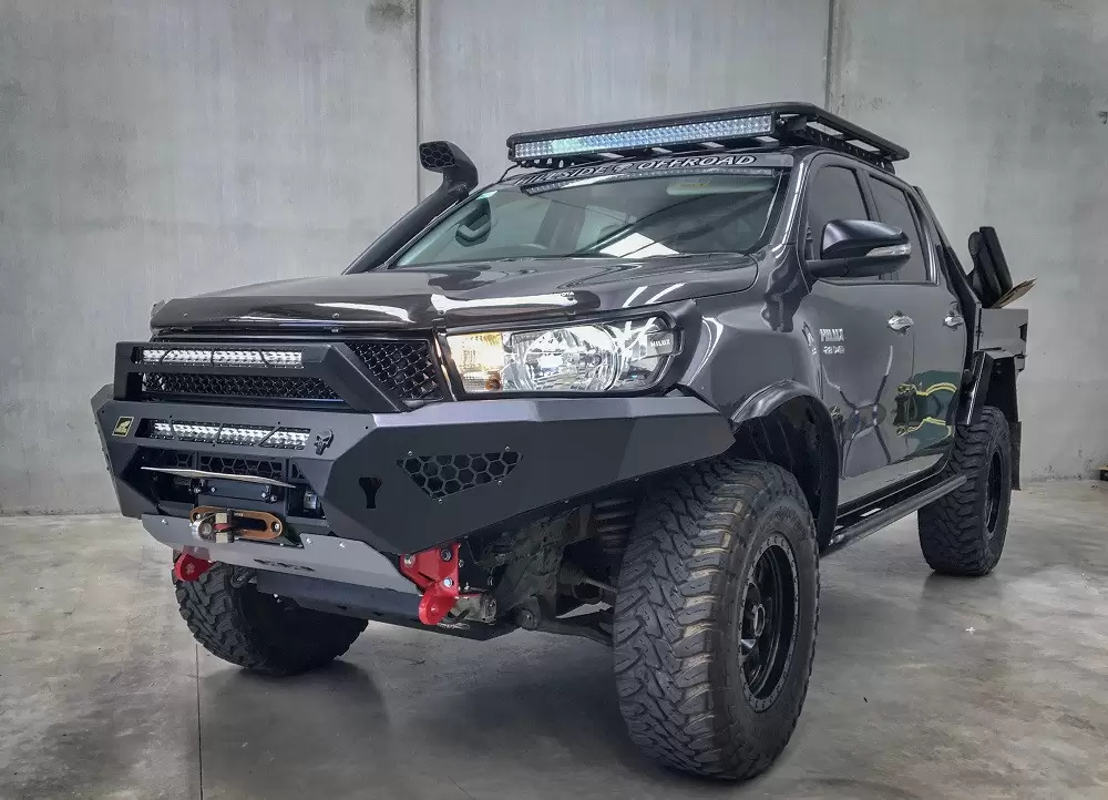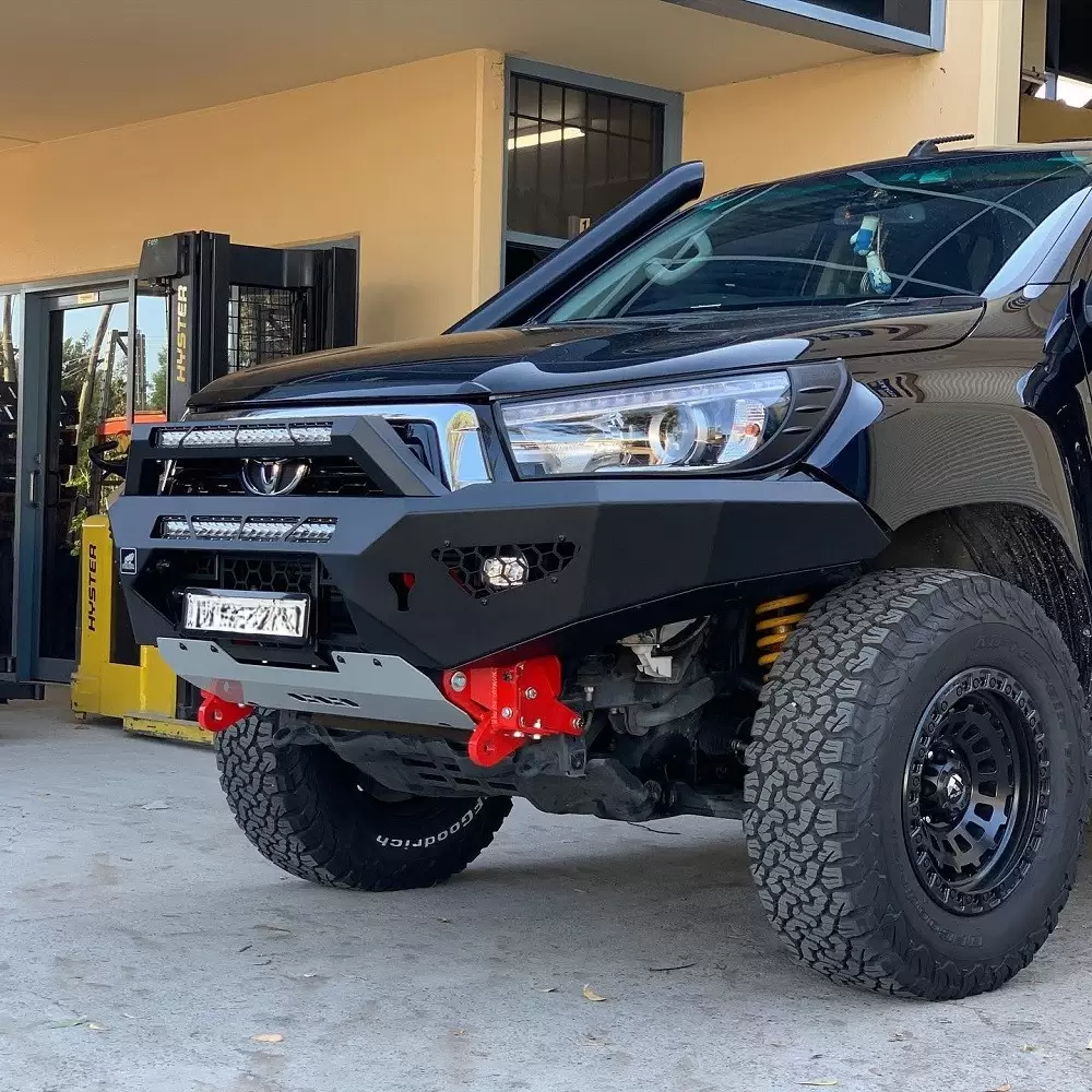 Designed as a full bumper replacement, this bull bar transforms your Hilux’s front-end appearance while delivering excellent protection and functionality. With a compact design, durable steel construction, and flexible lighting and winch options, it’s built for both adventure and everyday use.