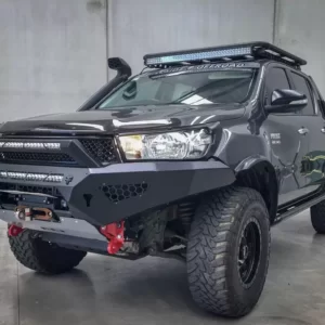 Designed as a full bumper replacement, this bull bar transforms your Hilux’s front-end appearance while delivering excellent protection and functionality. With a compact design, durable steel construction, and flexible lighting and winch options, it’s built for both adventure and everyday use.