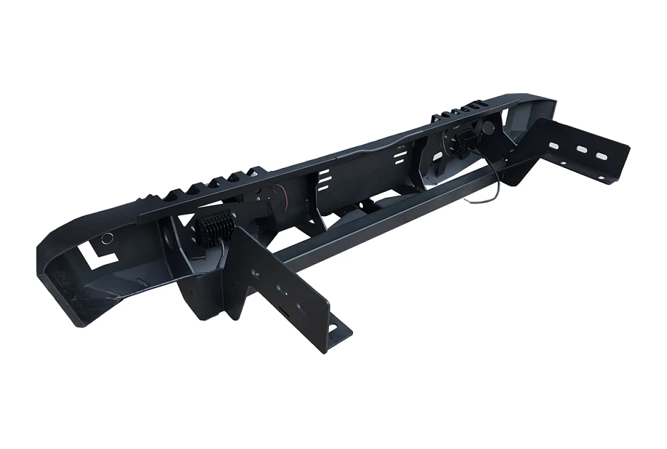 Add an extra layer of protection to your Ford Ranger or Mazda BT50 with this heavy-duty rear steel bar. Upgrade your 4WD with a unique design and added functionality with the included LED lights and hi-lift jacking points. Enhance the look of your vehicle while increasing its durability on and off the road.n