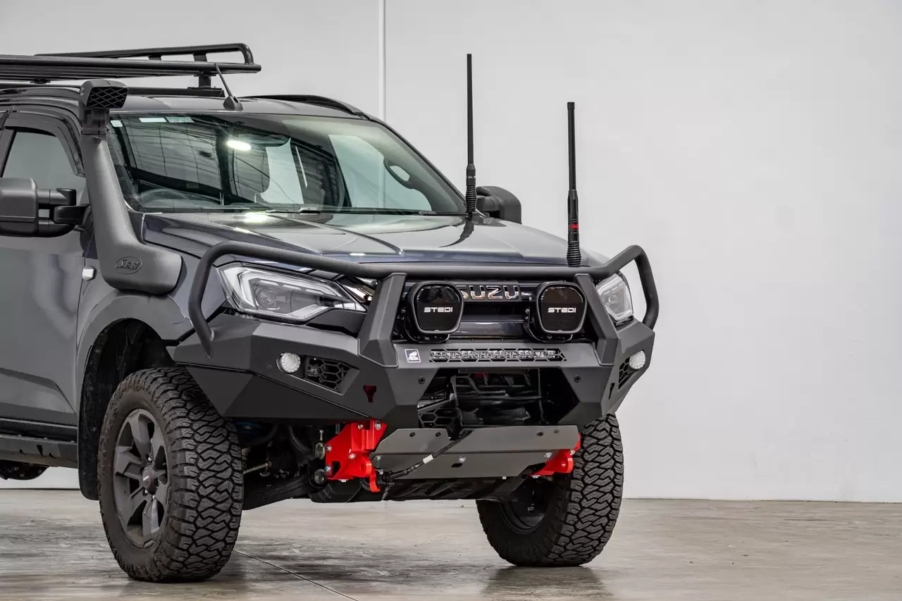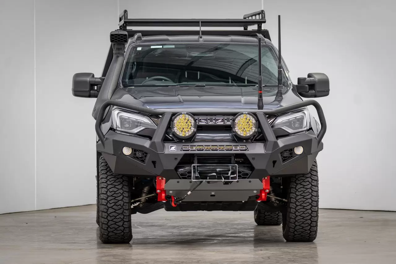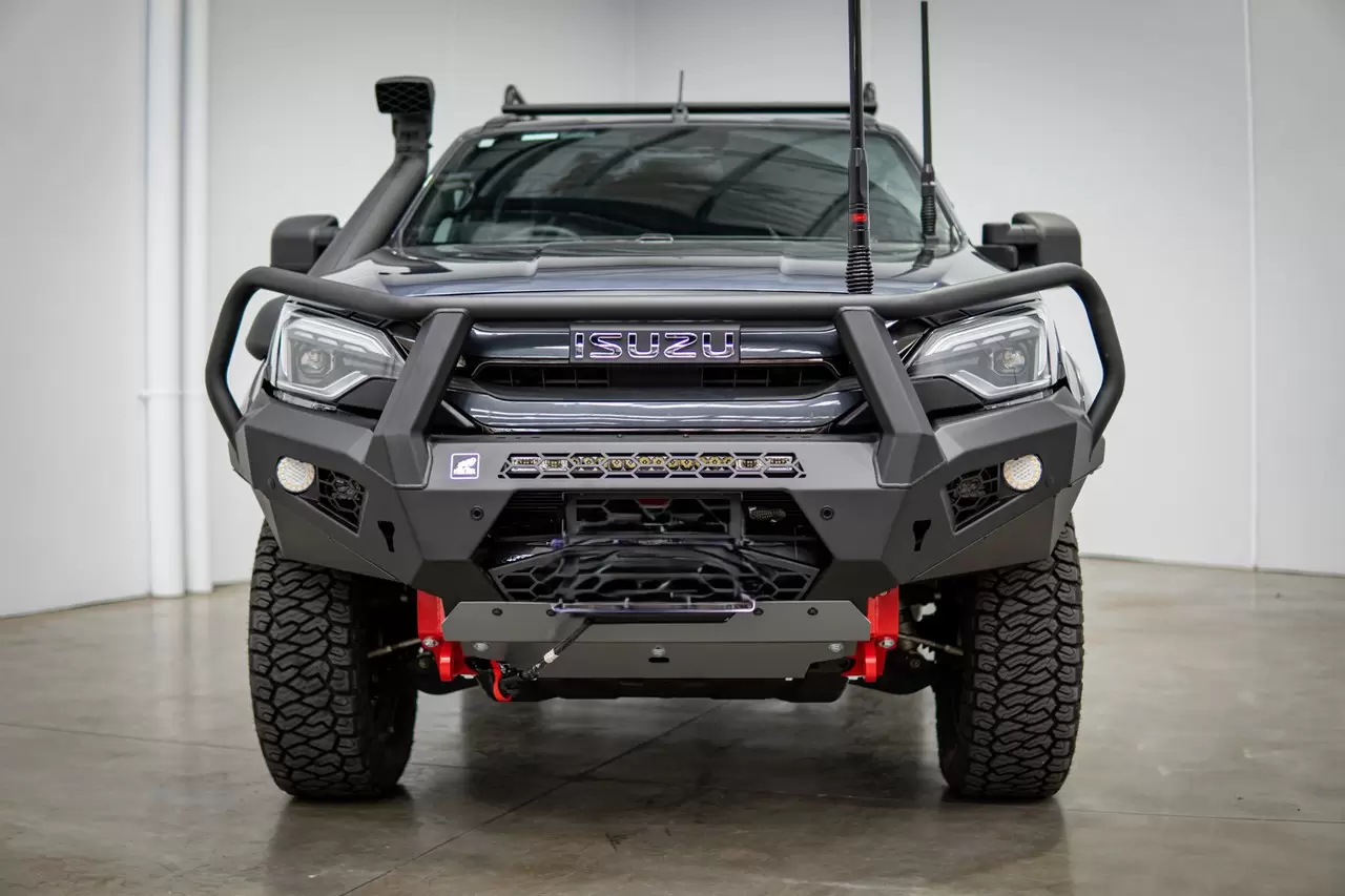 New Toro Bull Bar Isuzu D-MAX 2024+ Facelift. Aggressive, lightweight bull bar with winch compatibility and full sensor integration.