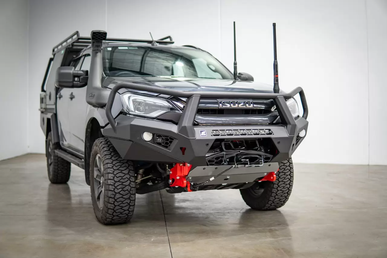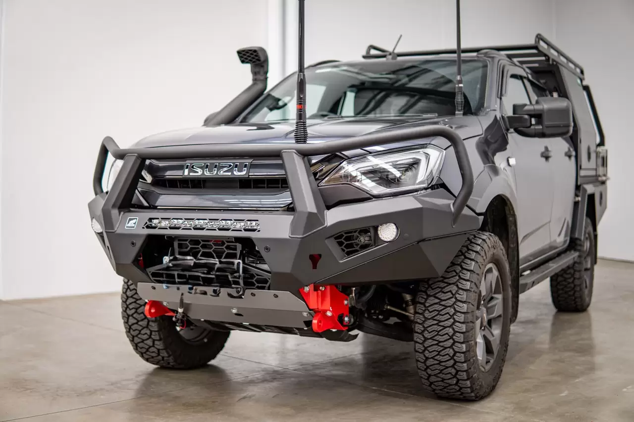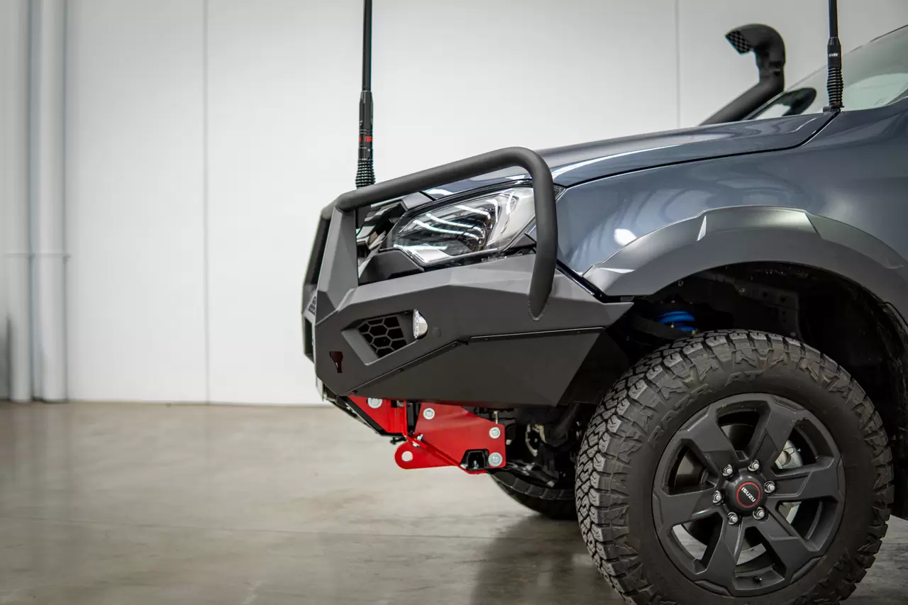 New Toro Bull Bar Isuzu D-MAX 2024+ Facelift. Aggressive, lightweight bull bar with winch compatibility and full sensor integration.