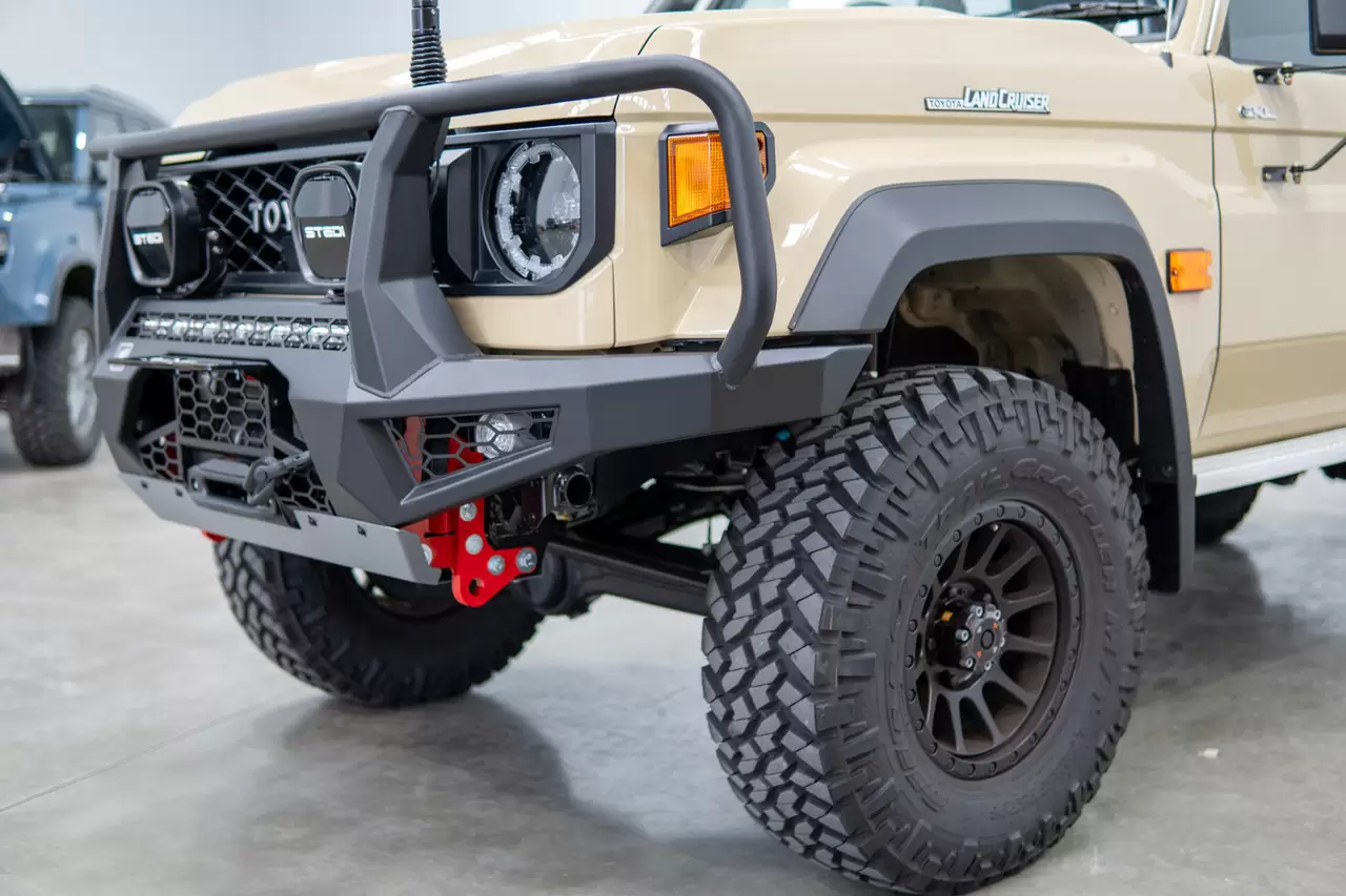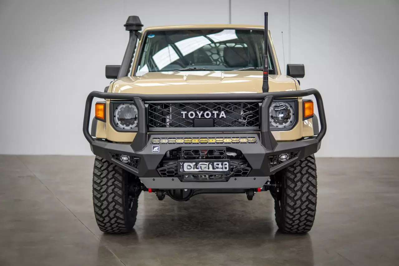 Upgrade your Toyota Land Cruiser 79 Series Single Cab (MY24+) with the Toro Bull Bar—purpose-built for facelift widebody models with flares.