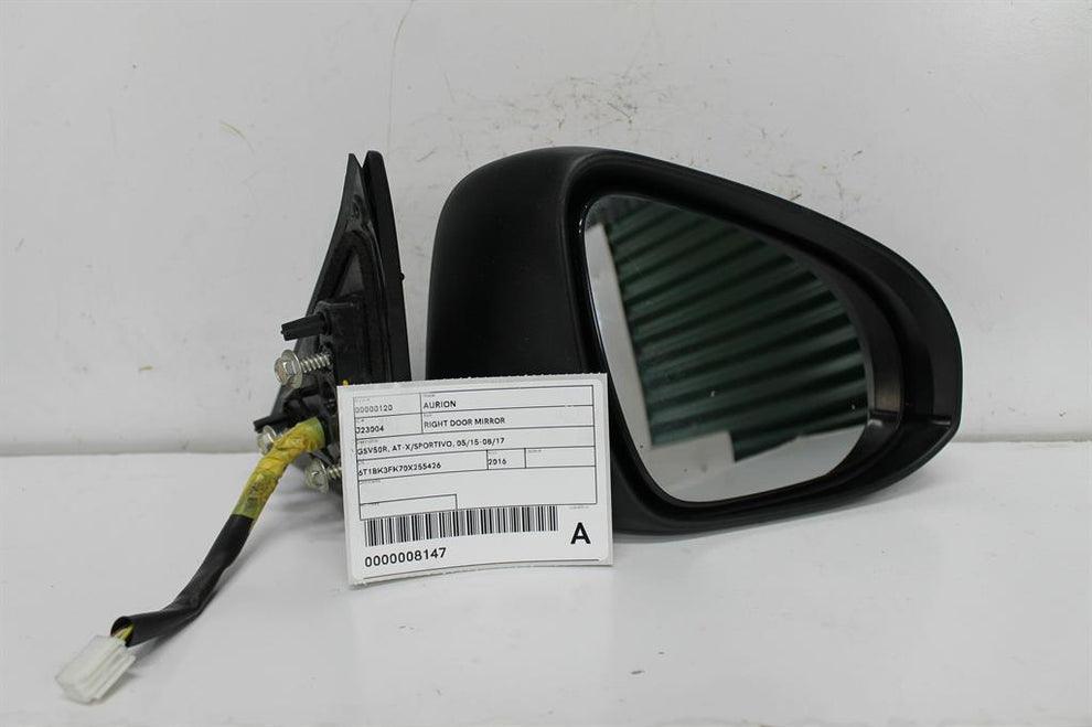This Right Door Mirror is designed for the Toyota Aurion GSV50R series and is compatible with AT-X and Sportivo models manufactured between May 2015 and August 2017. As a genuine OEM component, it ensures correct fitment and reliable performance, matching factory specifications for proper side and rear visibility.